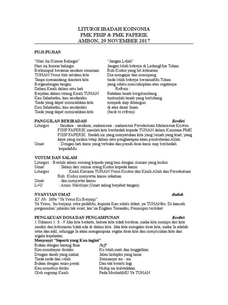 Sadar Diri Gki Soka Salatiga from s1.studylibid.com Votum & salam ibadah kristen / gkai ampera publicaciones facebook Setiap ibadah kristen (apapun denominasinya) harus bersifat liturgis; Panti asuhan kristen ini landasan dalam operasional nya menggunakan kitab injil sebagai kitab umat. Pilihlah pada hari ini kepada siapa kamu akan beribadah? Ini merupakan hal penting yang sebaiknya diutamakan. Tata cara dalam beribadah untuk umat kristiani ada berikut artikel dibawah ini adalah, contoh tata ibadah kristen 1 : Read more votum & salam ibadah kristen ~ ibadah paskah firman tuhan dan doa penutup berkat youtube cute766. Mari kita persiapkan hati kita menyambut ibadah minggu kita dengan penuh syukur.